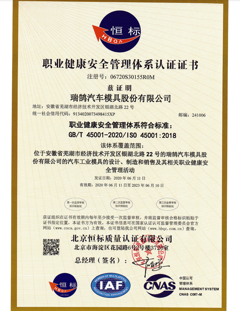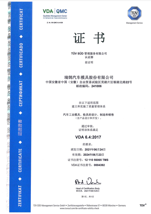 ????????瑞鵠汽車(chē)模具股份有限公司成立于2002年3月,坐落于中國(guó)(安徽)自由貿(mào)易試驗(yàn)區(qū)蕪湖片區(qū)銀湖北路 22 號(hào),股本數(shù)18360萬(wàn),公司的主營(yíng)業(yè)務(wù)為汽車(chē)沖壓模具、檢具及焊裝自動(dòng)化生產(chǎn)線的開(kāi)發(fā)、設(shè)計(jì)、制造和銷(xiāo)售,主要產(chǎn)品有沖壓模具(覆蓋件模具、高強(qiáng)板模具)及檢具、焊裝自動(dòng)化生產(chǎn)線、一體化鋁壓鑄零部件,為國(guó)內(nèi)少數(shù)能夠同時(shí)為客戶(hù)提供完整的汽車(chē)白車(chē)身高端制造裝備、智能制造技術(shù)及整體解決方案的企業(yè)之一。